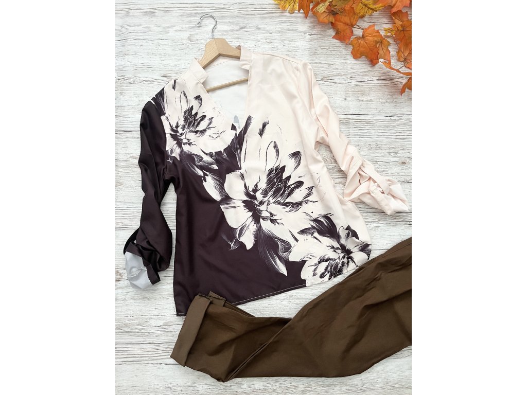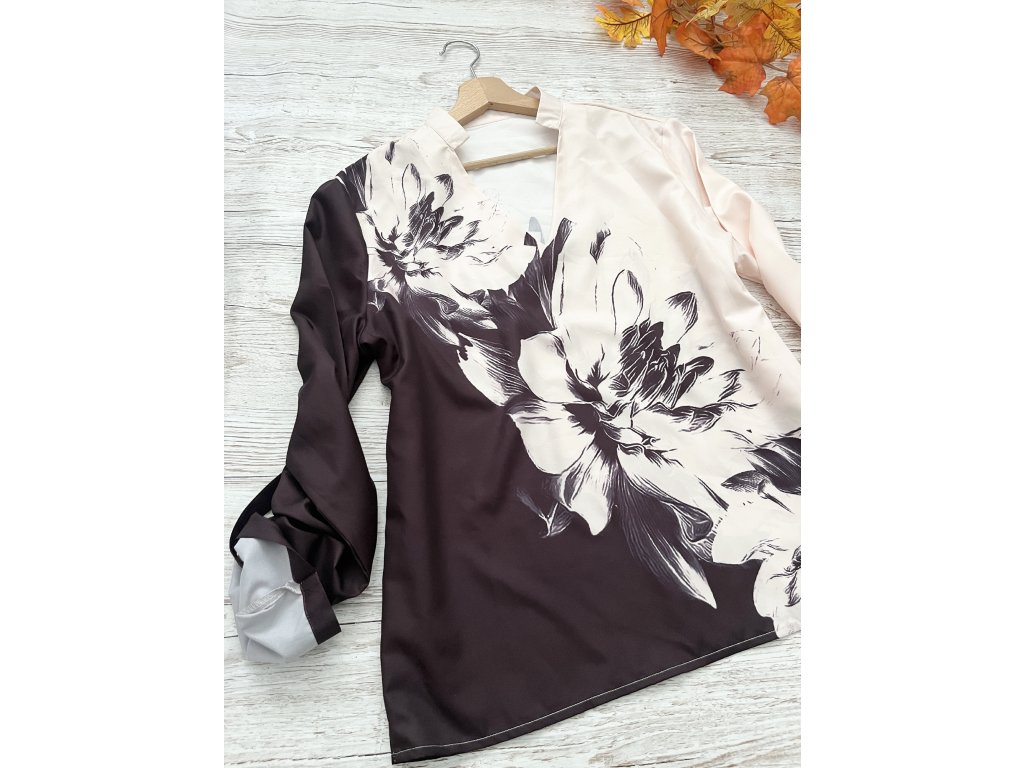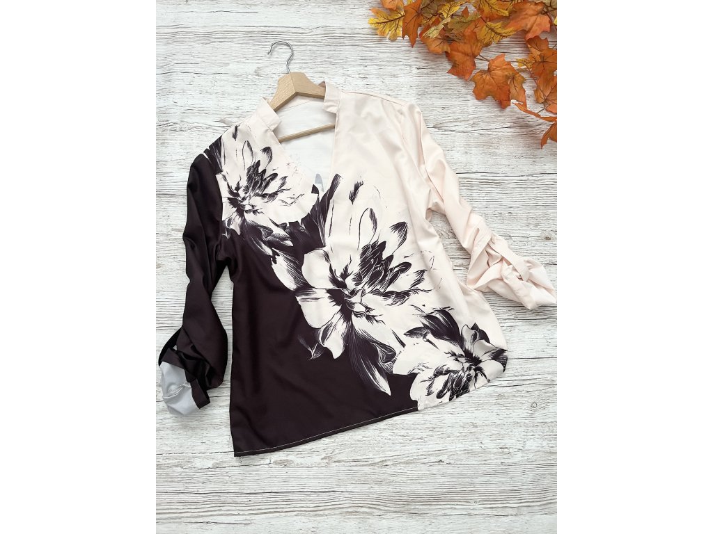 Halenka s květy a roll-up rukávy Butik