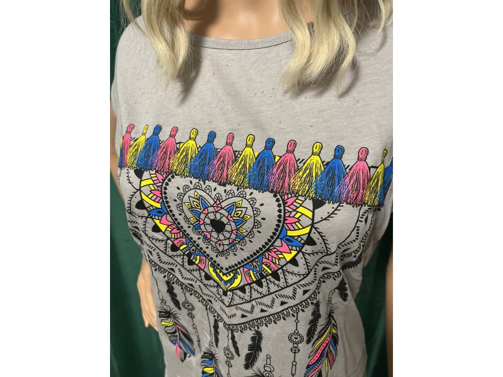 Krásné šedé triko s barevným boho potiskem. Materiál 100% bavlna.