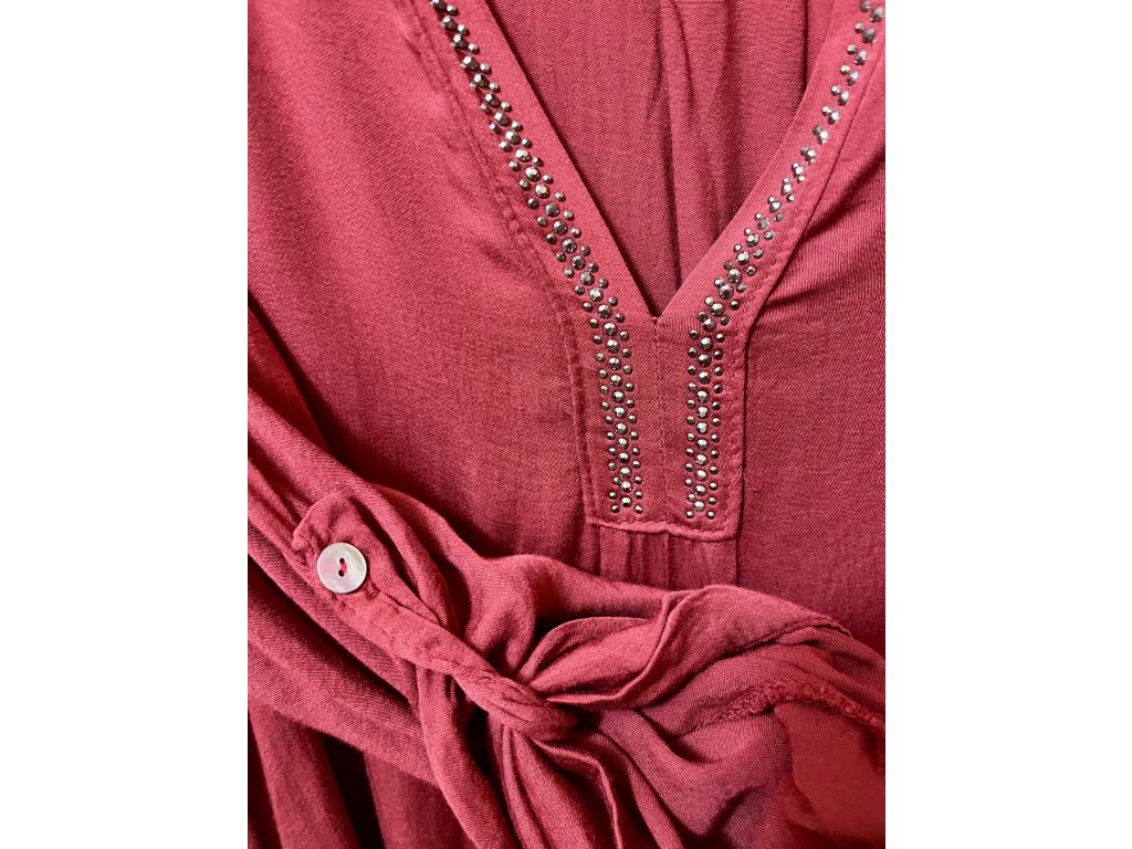 Vínově červená zdobená halenka s roll-up rukávy Italy