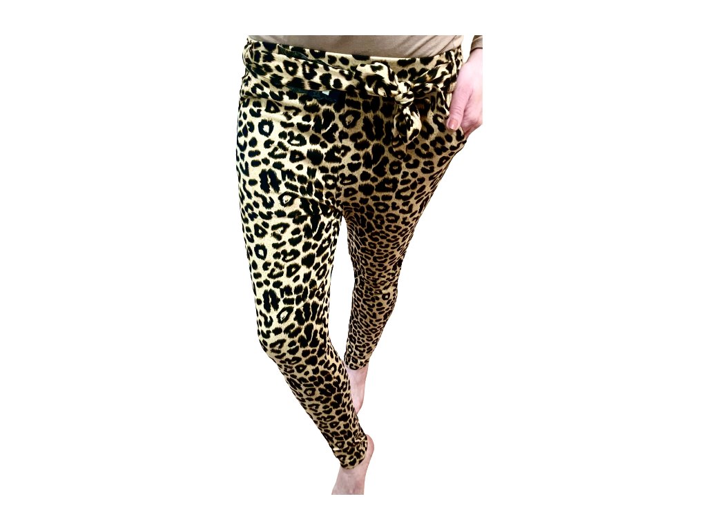 Dámské elegantní kalhoty s leopardím vzorem a páskem Styleo