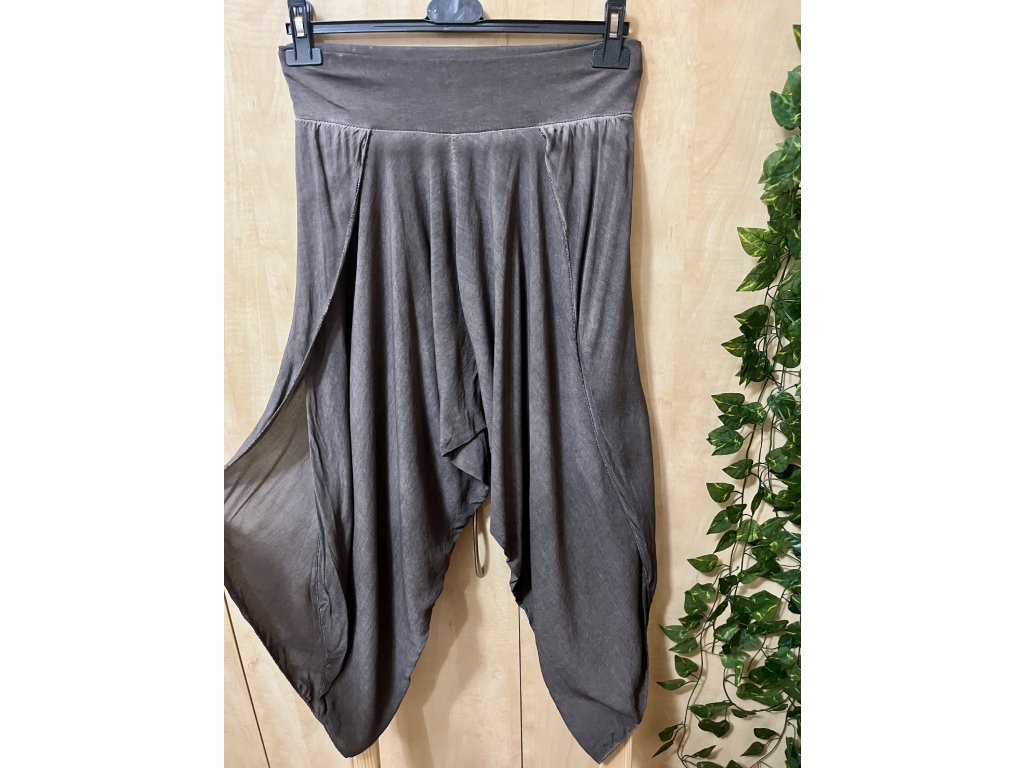 Hnědošedé lehké splývavé baggy kalhoty s bočními průstřihy Italy