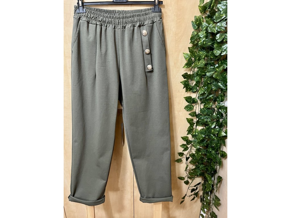 Khaki kalhoty s ozdobnými knoflíky Italy