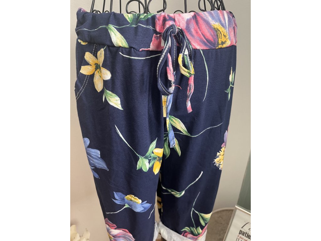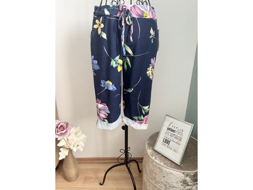 Květované tmavě modré bavlněné 3/4 kalhoty Rose