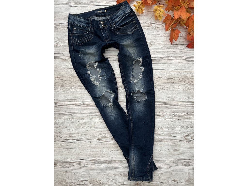 Tmavě modré trhané pružné skinny džíny Anule Jeans