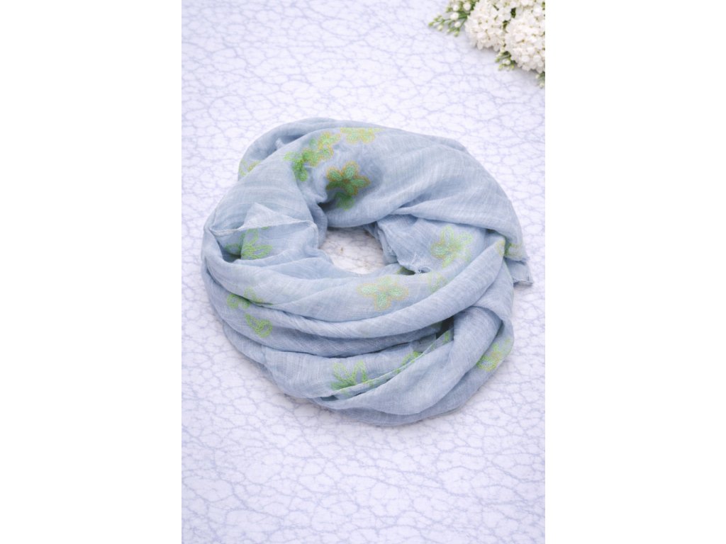 Dámský letní zdobený světle modrý šátek/šála Sky