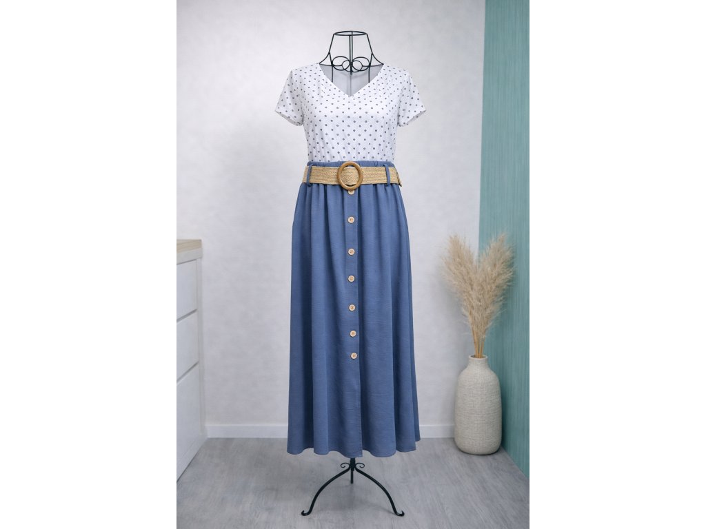 Modrá dlouhá sukně s páskem a kapsami Italy