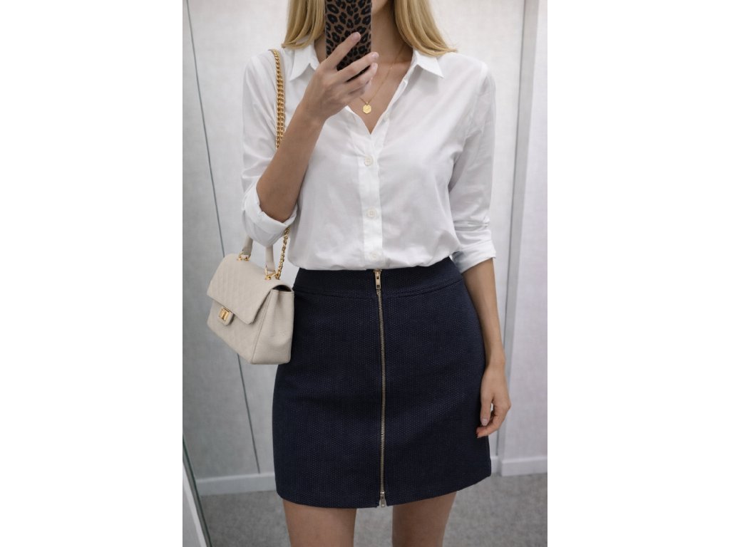 Tmavě modrá pružná sukně s oboustranným zipem Custommade